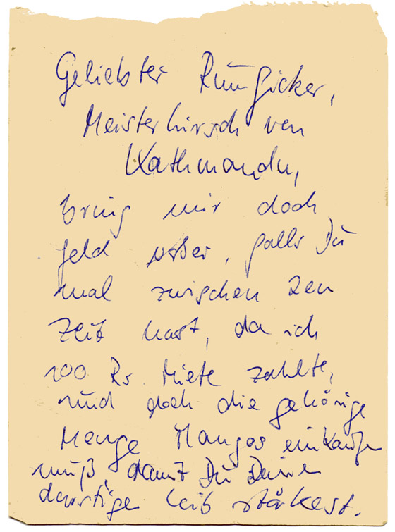 Ich hatte ab einem gewissen Zeitpunkt meine eigene Bude noch zusätzlich in Kathmandu - irgendwo in der Nähe, in einem anderen Freak-Hotel, oben im 5.Stock. Eigentlich wohnten wir im Hotel Eden am Basantpur-Platz, wo sich Marktstände befanden.